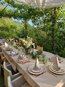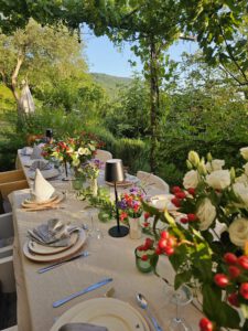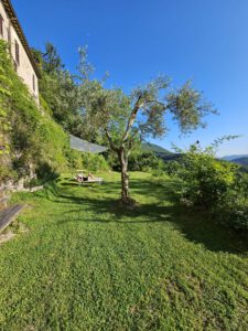 Here we offer sun loungers and towels. Decide for yourself whether you want to relax in the cool shade under the old olive tree or in the sun. You can access our panoramic garden through our Magazzino. Here you will find a fully equipped kitchen, chilled drinks and, of course, everything you need for a cappuccino or latte macchiato. At Magazzino we also organize wine tastings and typical Umbrian evenings. Here you can experience the real bella Italia. As soon as it gets warm, the large granite table under the old vines offers enough space in the shade. Look forward to entertaining barbecue evenings with friends and Umbrian specialties.